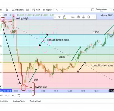 Grundprinzip: Die Strategie nutzt ausschließlich Kursentwicklungen, kombiniert mit Kerzenspitzen, Drehpunkten sowie Unterstützungs- und Widerstandspunkten, um Handelsmöglichkeiten zu finden.